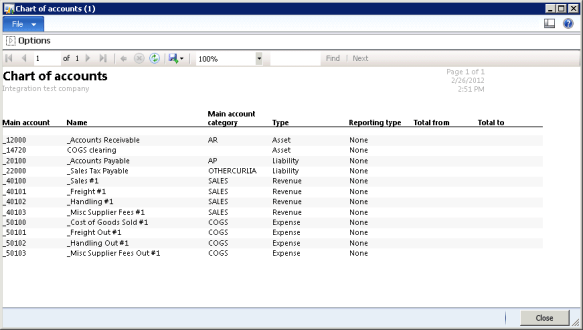 I’ve seen this behavior occur in other reports as well (e.g. sales invoice). I suspect that reports designed with portrait orientation whose columns completely fill the width of the page are more likely to exhibit this behavior. The actual report designs do not seem to be faulty. For example, the chart of accounts report appears to be properly designed such that its elements do not exceed the page width as defined in the report’s properties in Visual Studio.